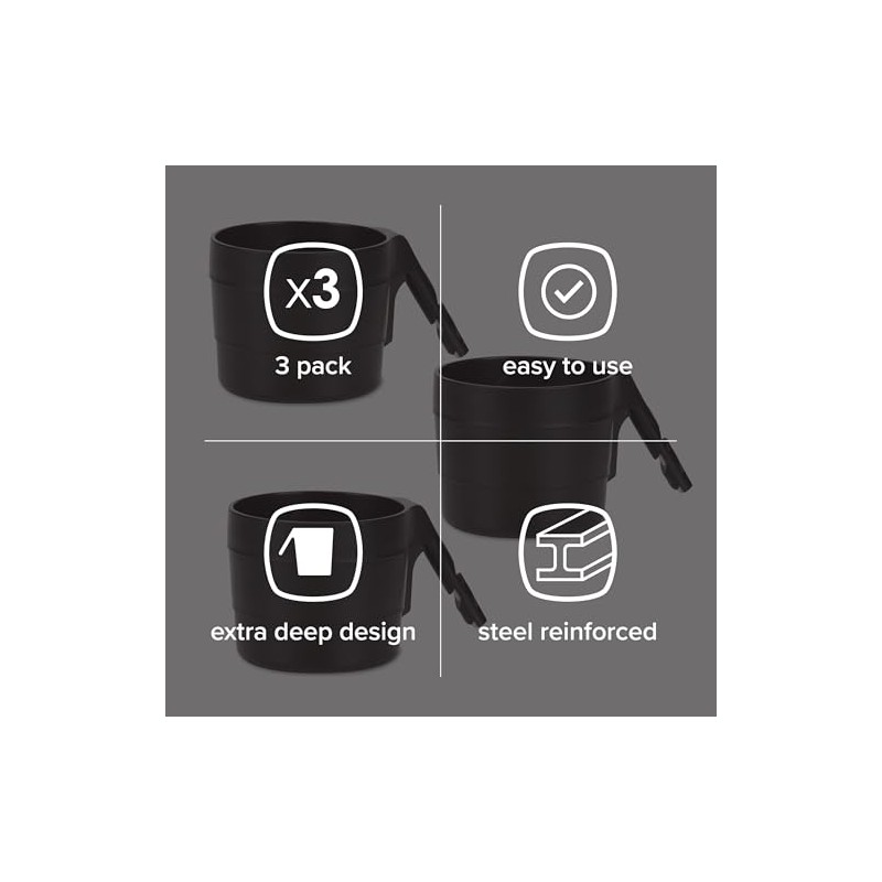 Diono XL Car Seat Cup Holders for Radian and Everett Car Seats, Pack of 3 Cup Holders, Black