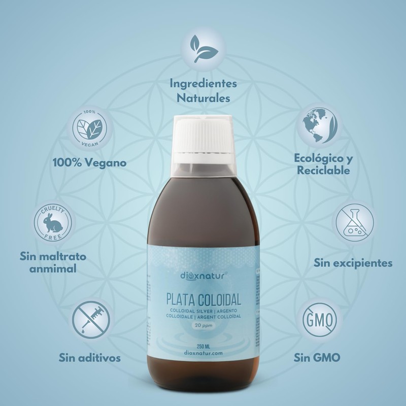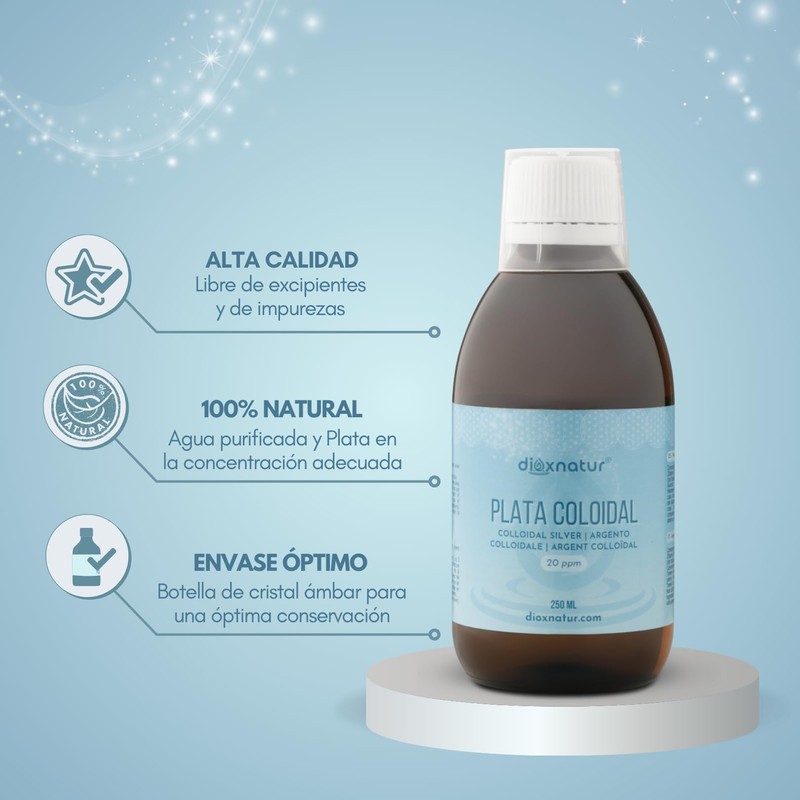 - Reines kolloidales Silber mit optimaler Konzentration von 20ppm, 100% natrlich, ohne Zusatz- und Konservierungsstoffe und frei von Verunreinigungen. 0,003 bis 0,007 Mikron. Nur mit Bidestiliertem Wasser und 99,99 % Silber hergestellt.