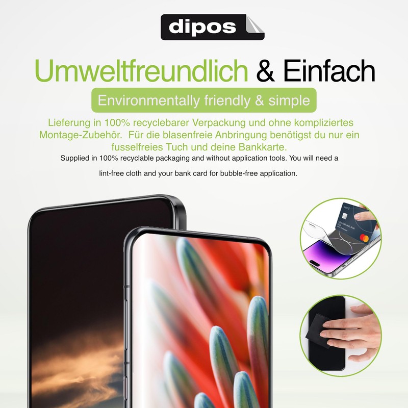 For you and the environment: We have dispensed with unnecessary accessories. Everything you need to apply the film bubble-free is already at home - a lint-free cloth and a bank card.