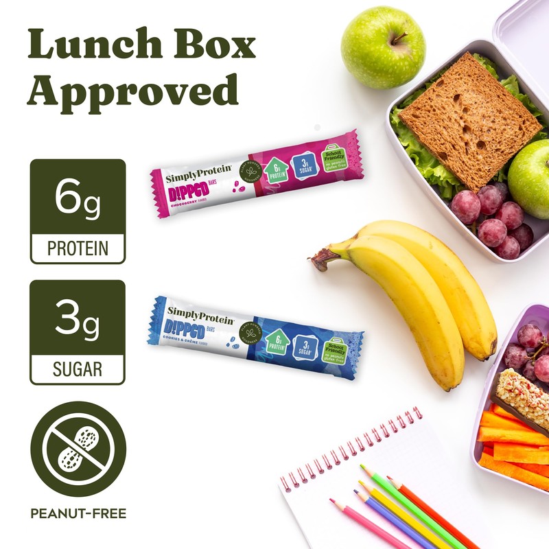 • Dip, Dip, Hooray! - Simply Protein Dipped bars offer 7g plant-based protein and 4g sugar, PLUS a wholesome blend of nutrients from veggie + fruit extracts. Includes 10 individually wrapped bars in our Cookies & Crème flavor.