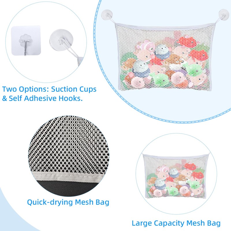 - [Vielseitige Verwendung] Neben Badewannenspielzeug können Sie auch Badeschwämme, Haarbürsten oder Badebomben aufbewahren. Ideal für Wickeltische, kinderfreundliche Aufbewahrung oder Pool-Zubehör. Maschinenwaschbar für einfache Reinigung und Pflege.