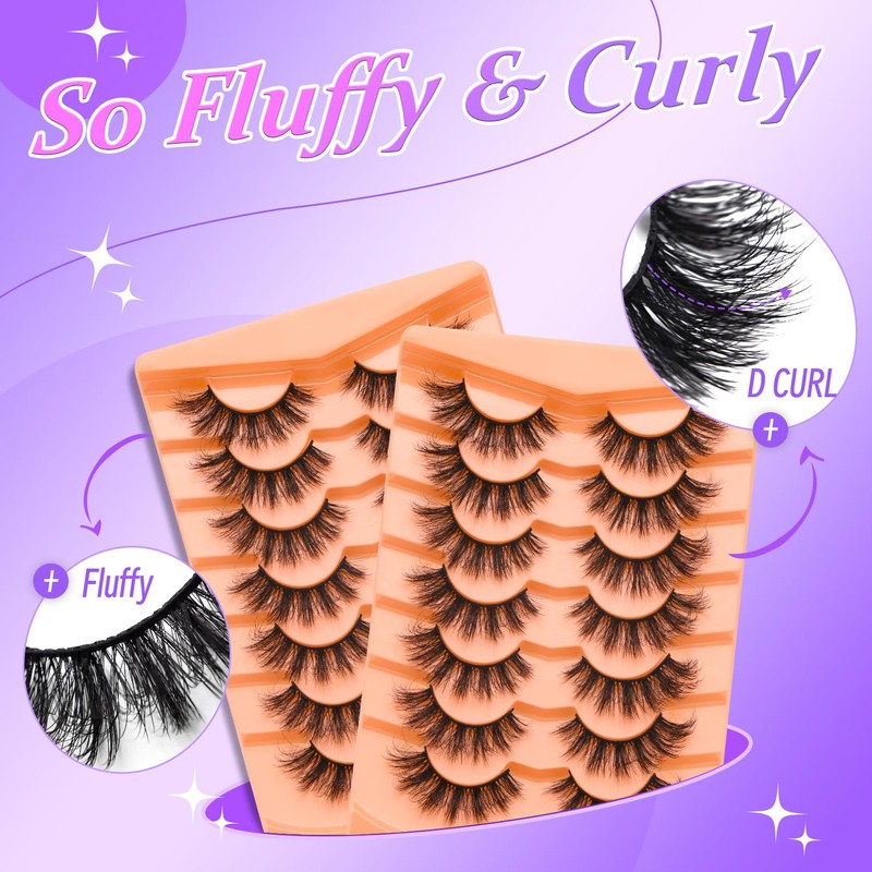 Dirbeauty Fluffy False Eyelashes Mink Lashes 8D Volume False Eyelashes Thick Soft Curly Fake Lashes 7 Pairs Black