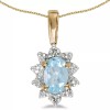 DIRECT-JEWELRY DON'T FORGET THE DASH 10k Yellow Gold Oval Aquamarine And Diamond Pendant with 18" Chain