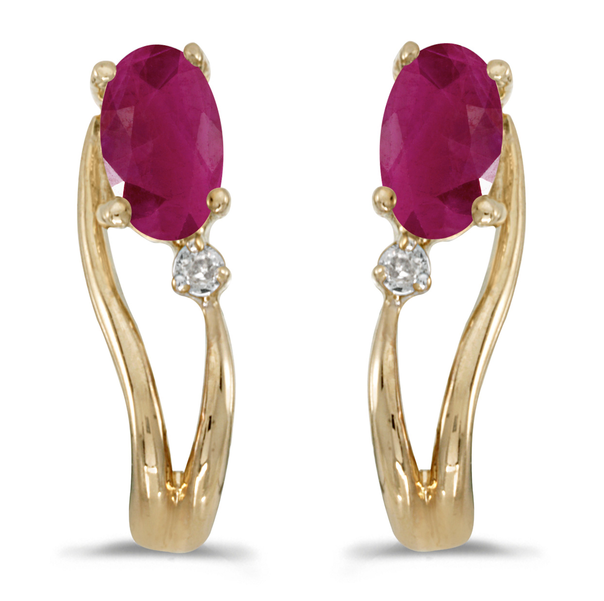 DIRECT-JEWELRY DON'T FORGET THE DASH 14k Yellow Gold Oval Ruby And Diamond Wave Earrings