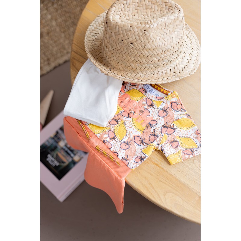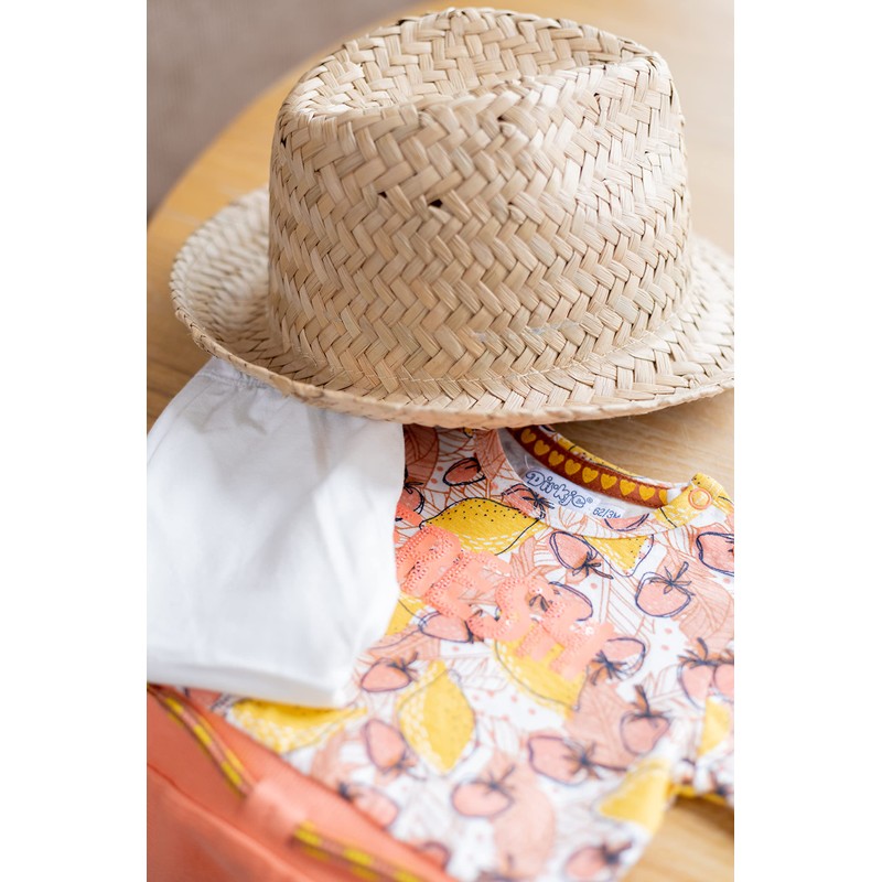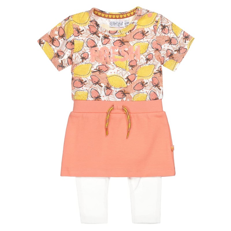 - 2-PIECE BABYSUIT: This is the Dirkje 2-piece babysuit which is designed for girls. The clothes have short sleeves.