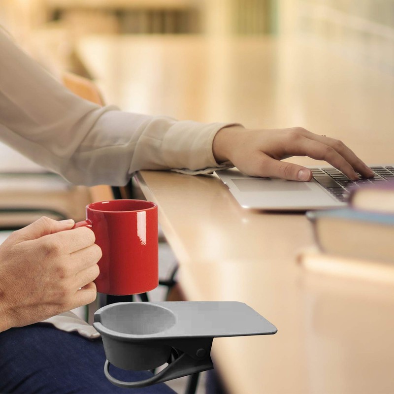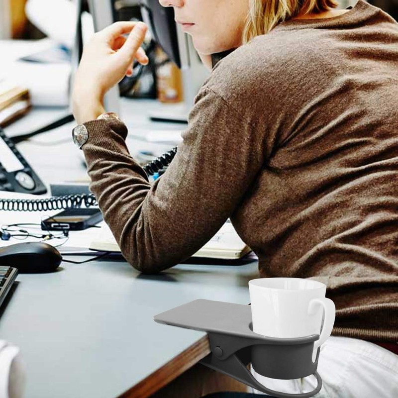 Dirza - Soporte para tazas con clip para silla de oficina, mesa, computadora, lado para sostener café, agua, bebidas, soda, té, gris