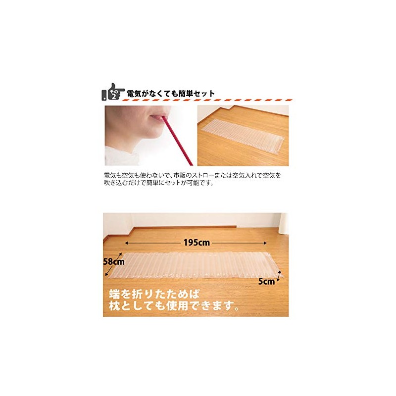 Even without any tools, you can inflate it by yourself using a commercial straw or air pump, and adjust the firmness of the mat by the amount of air.
