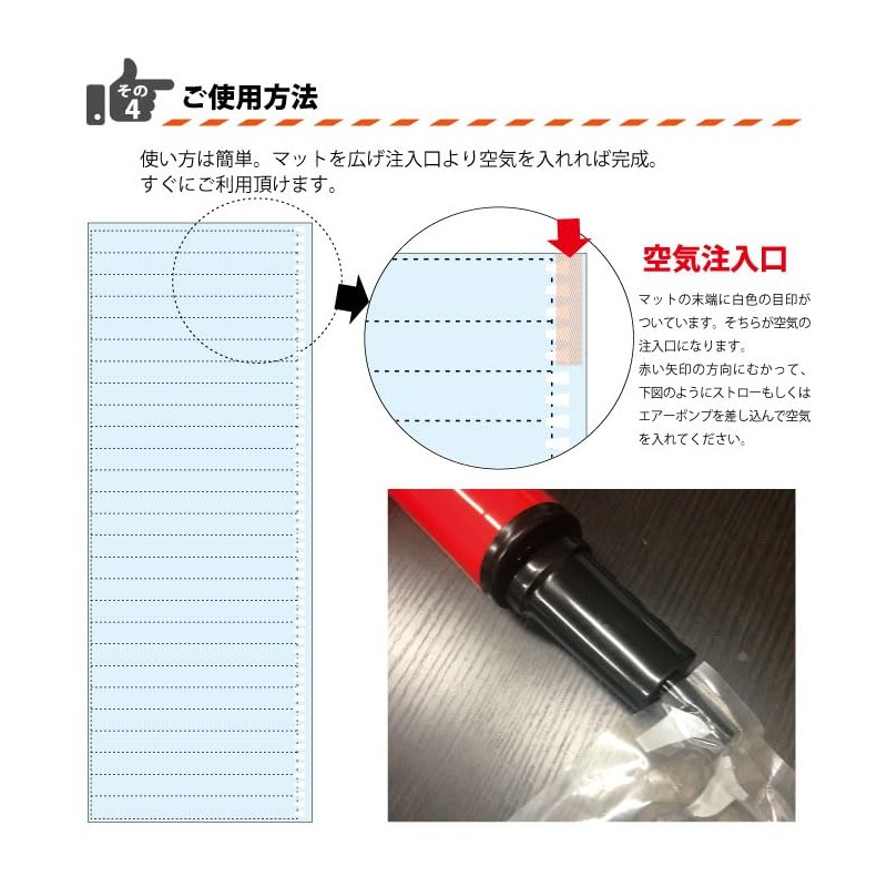 ● These simple air mats are used by many companies and municipalities after earthquakes such as the East Japan earthquake, Hanshin Sanji earthquake, and Hokkaido Gangangangou earthquake.