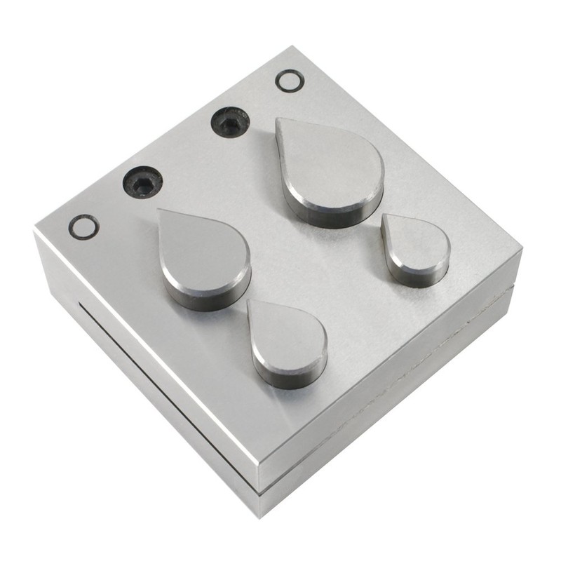 - Comes in a wooden box with 4 hardened steel punches in teardrop shapes.