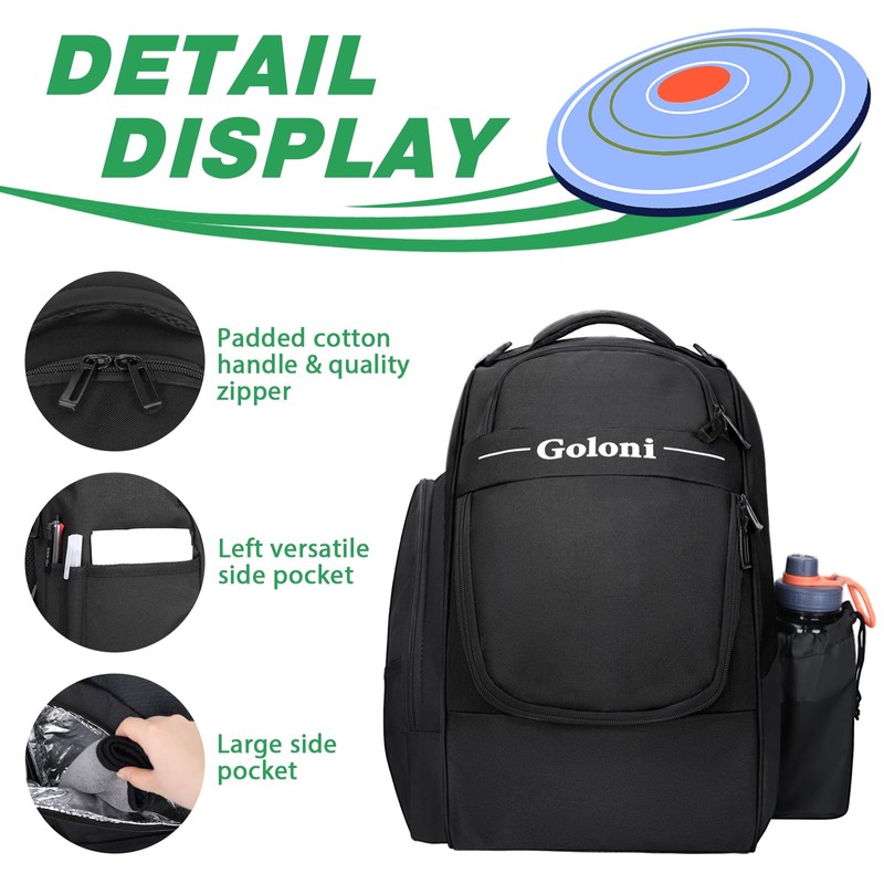 • 【Large Capacity】The disc golf bag holds 23+ discs in the main compartment, perfect for disc golf players or new frisbee beginners