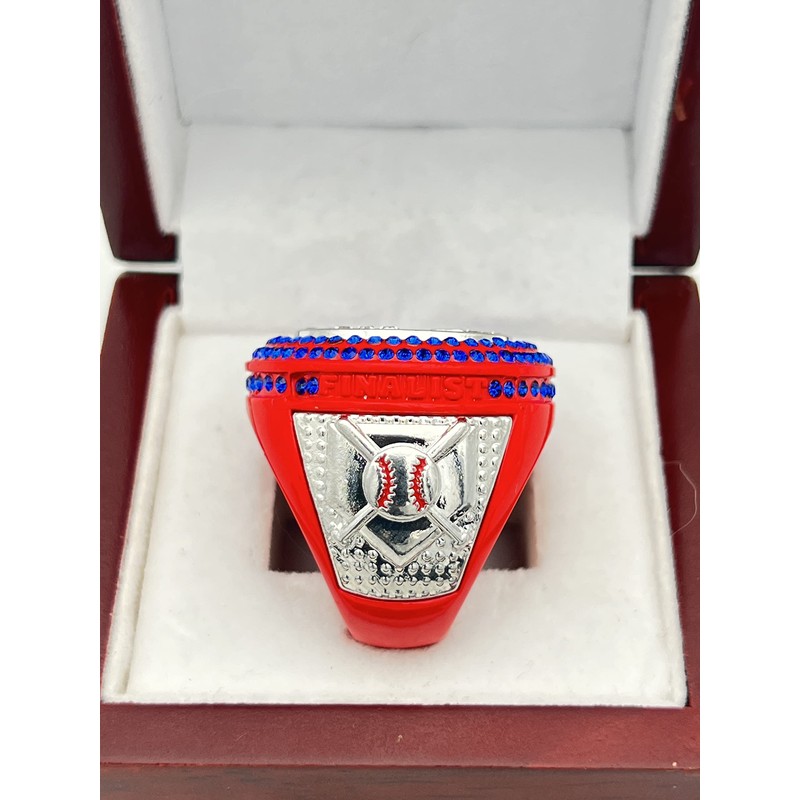 Discount Sports Rings Deluxe Batter Ring, RED FINALIST BLUE STONES, Premium Softball Baseball Tournament Rings 28-14