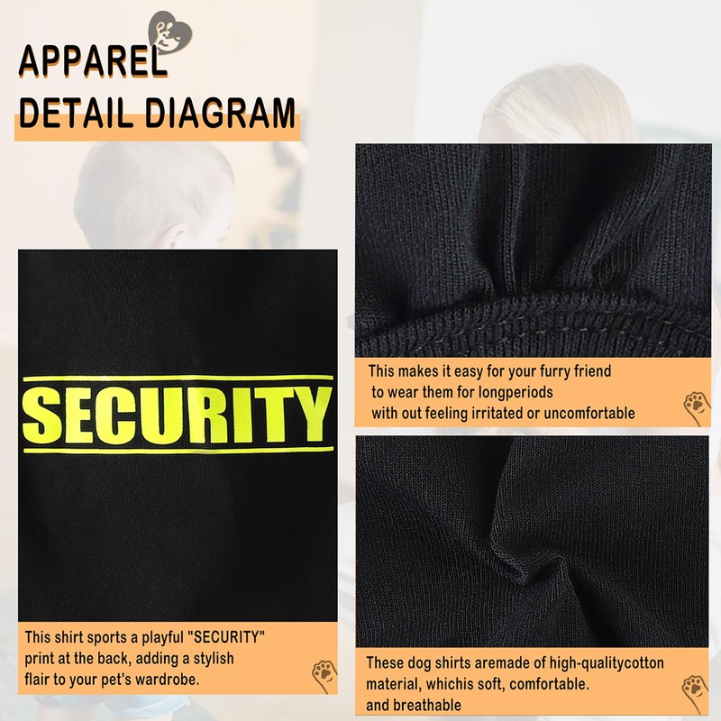 Discover Cozy Cotton Canine Wear: Soft, Lightweight, and Breathable Dog Shirt Vest with Eye-Catching Graphics(Security), Keeping Your Furry Friend Warm and Comfy! Black L