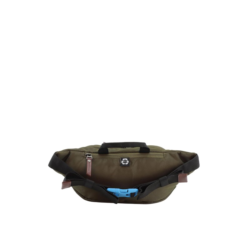 - - Material rPET polyester - One handle - One main compartment with zip - One front zip pocket - Adjustable belt - Back zip - RFID pocket - Multifunctional open pocket and zipper - Key chain