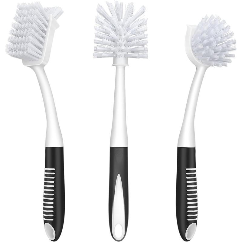 Dish Brush Set of 3 with Bottle Brush, Dish Scrub Brush with Long Handle Deep...