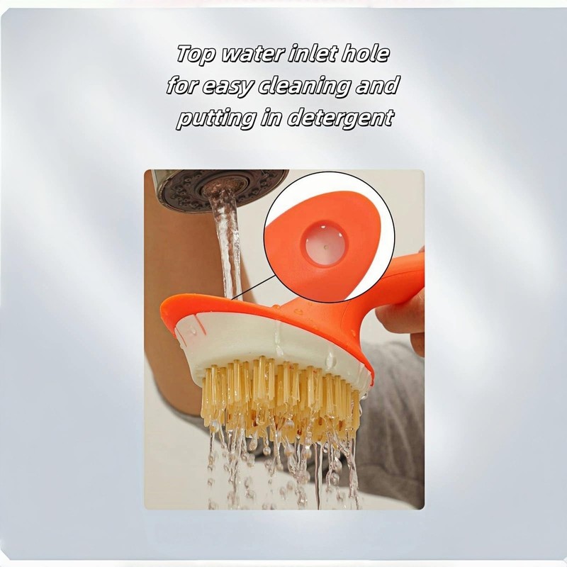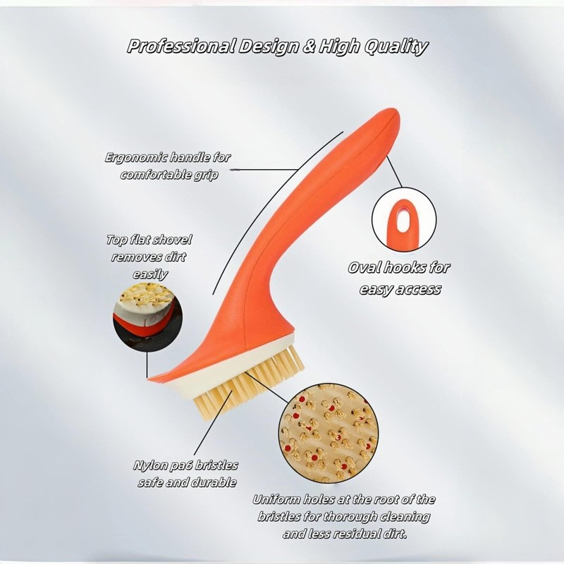 This is a high quality cleaning brush with patented design, the open hole design connected to the root of the bristles, when using it, you can add detergent from the open hole to make it evenly infiltrate all the bristles and bring rich foam, and you can also flush the water directly from the hole after using it in order to clean the root of the bristles thoroughly. The ergonomically designed non-slip brush handle makes your home cleaning tasks more comfortable and efficient.Nylon PA6 Bristles,Safe for Non-Stick & Coated Cookware.