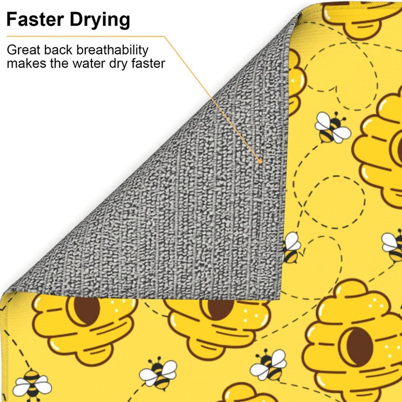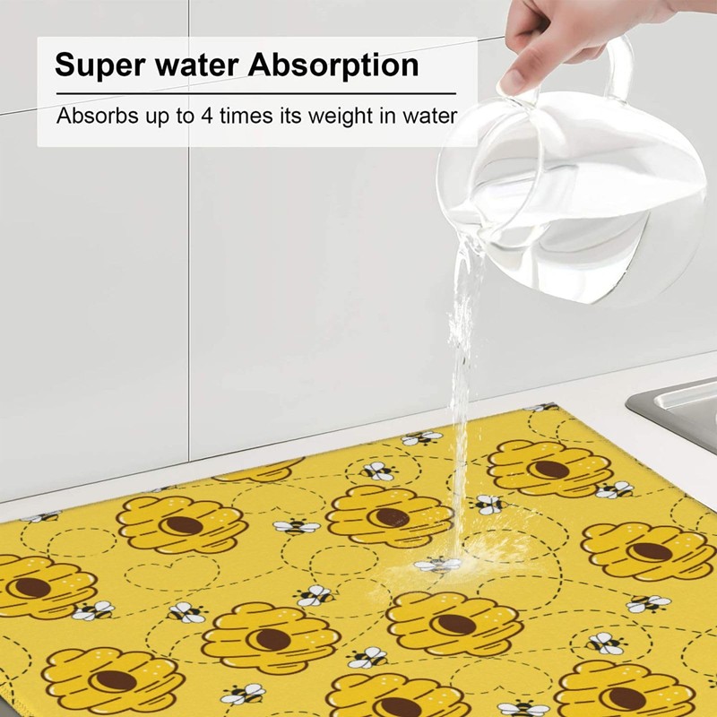- ABSORBENT MATERIAL: Crafted with microfiber, this bee drying mat absorbs moisture quickly and efficiently. Say goodbye to wet countertops and hello to a clean and dry kitchen workspace
