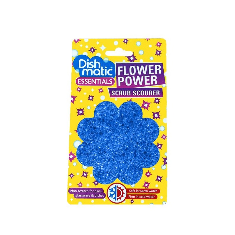 Dishmatic Flower Power Scrub Scourer – Non-Scratch Flexi-Fibre Technology, Soft in Warm Water & Firm in Cold Water, Ideal for Cleaning Pans, Glassware and Dishes