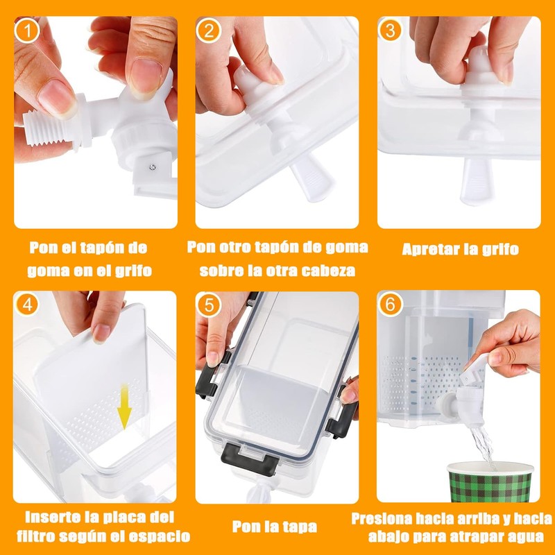 - 🍹【Sellado sin fugas】El contenedor de agua tiene grifos y tapas con anillos de goma que sellan sin fugas y cierran firmemente para evitar derrames. Con los filtros zonificados reemplazables, puede filtrar el agua y evitar que las impurezas de los residuos de fruta entren en el grifo. Y con el diseño de zonificación individual, es fácil de desmontar y limpiar, muy cómodo.
