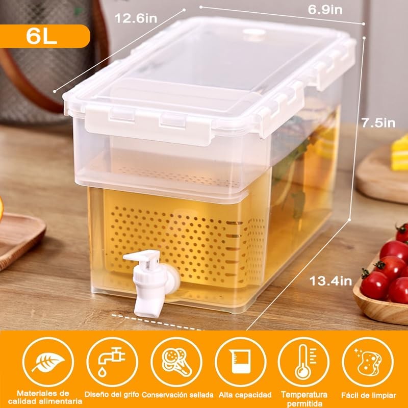 Dispensador de Bebidas, Vitrolero de Plastico, Dispensador de Agua para Refrigerador, Jarra de Agua Con Grifo y Tapa, Contenedor de Agua de Plástico para Zumos de Frutas y Bebidas Frías(6L Blanco)