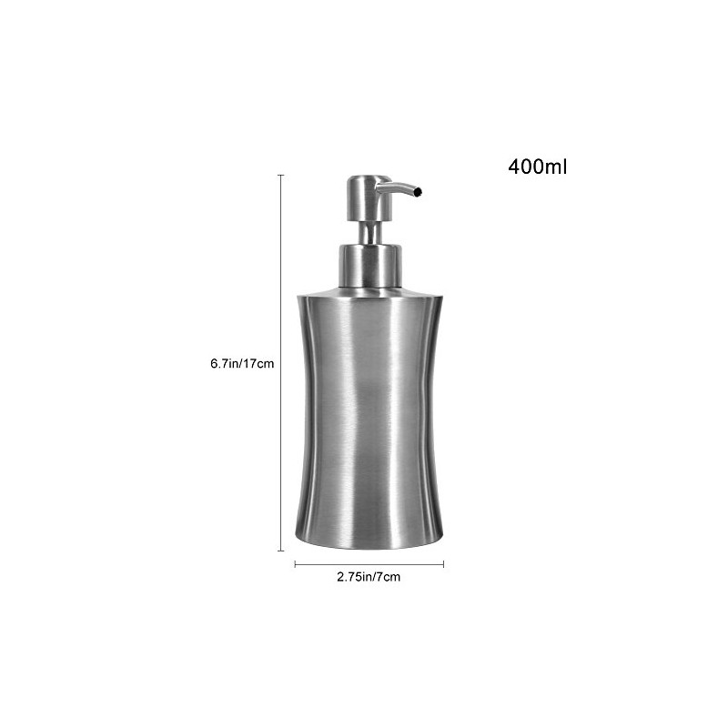 Dispensador de Jabón Líquido, 1pc 304 Dispensador de Loción de Bomba Manual de Acero Inoxidable Dispensador de Jabón Líquido para Manos Recargable para Baño Y Cocina 400ml / 250ml / 220ml(400ml)