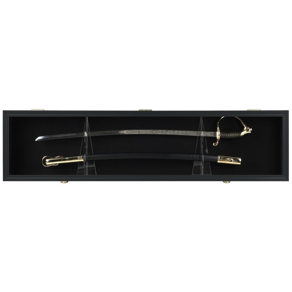 Sword Display Case Cabinet Stand Holder Wall Rack Holds Military Saber or Samurai Sword Lockable UV Protection Door Black Felt Inside (Black Finish Frame)