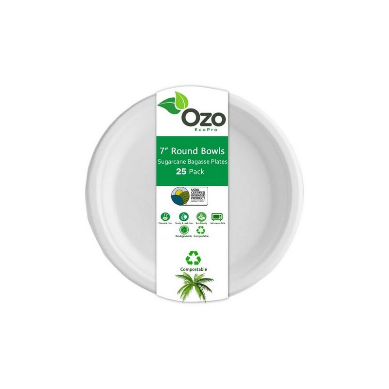 - ECO FRIENDLY: A world of eco-friendly dining awaits! Show your care and appreciation for our environment by using Ozo plates, which are a biodegradable, recyclable, USDA certified, and fully compostable replacement to plastic and other artificially made disposable dinnerware.