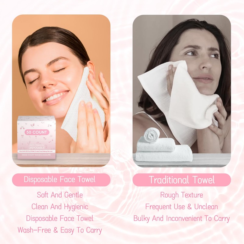 - Ultra-Soft And Durable. This disposable face towel is exceptionally soft, featuring outstanding absorbency and tear resistance. Specially treated for a gentle touch, it won’t cause friction or irritation during use, ensuring a comfortable cleansing experience. Additionally, it retains its shape and doesn’t thin out or become transparent when wet. Ideal for wiping your face, removing makeup, or even cleaning surfaces. Its superior absorbency allows you to dry your entire face with just one sheet. Try it once, and you'll fall in love with this gentle, nurturing experience!