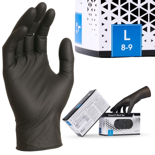 Disposable Gloves Pack of 100 | L | Nitrile Gloves Black | Powder-Free, Latex-Free Disposable Gloves | Tear-Resistant & Sensitive | EN 455 & EN 374 | Sizes XS, S, M, L, XL