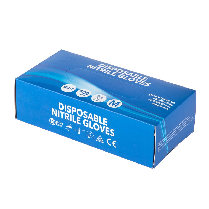 Disposable Nitrile Gloves, Powder Free, Blue, Size M (Pack of 100 Pieces)