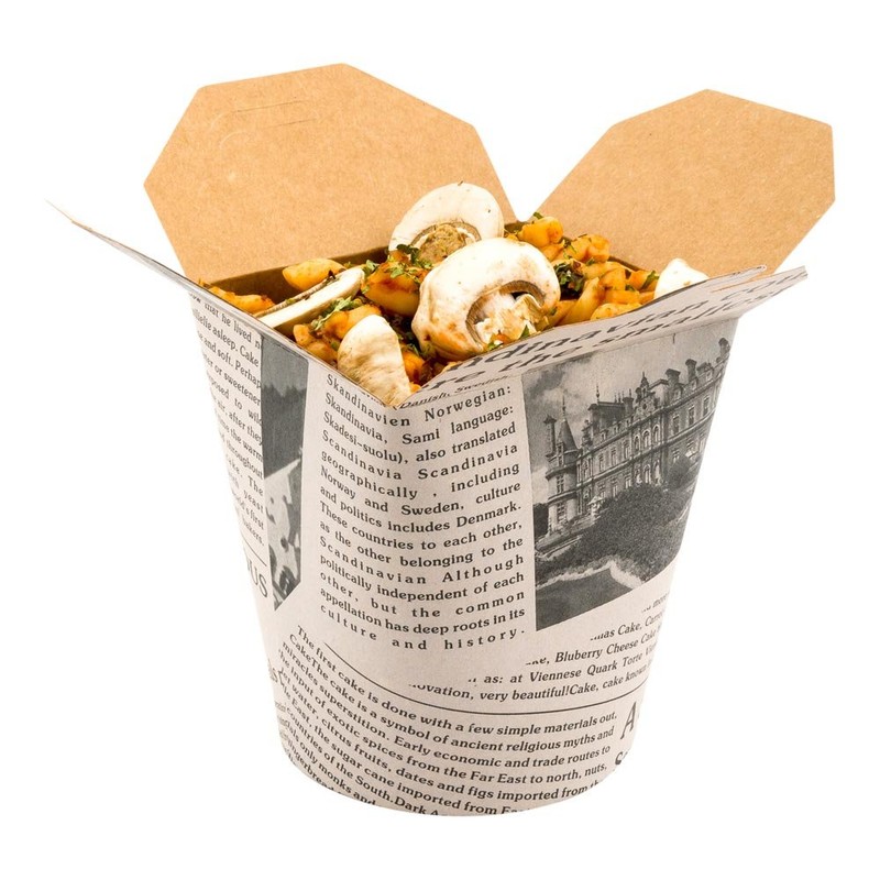 Provide customers with a simple and stylish way to take your delectable fare on the go with our 32-ounce Newsprint Round Noodle Take Out Containers. Featuring a poly-coated interior, these paper take out containers are built to prevent grease and oil from leaking through. Their grease-resistant lining is perfectly suited for serving messy or saucy foods, while their eye-catching newspaper print effortlessly enhances the presentation of your to-go dishes. Constructed from heat-resistant Kraft paper, these 32-ounce Chinese take out boxes are conveniently disposable and 100% recyclable. Their hassle-free fold- top design enables your staff to quickly and easily box up orders, while their built-in tab lock closure ensures foods will remain secure and protected on the go. These nature-friendly disposable food containers measure 4.5 inches tall and can contain up to 32 ounces. We offer these newsprint take out food containers wholesale in a 200-count box.