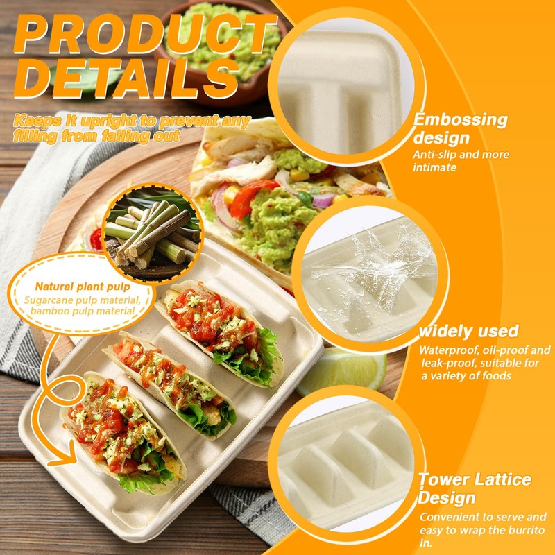 - 【Ample Packaging】 You will receive 50 disposable taco holders with 3 compartments, measuring about 7.6" x 4.9" (19.5 x 12.5 cm). They provide ample space for your delicious taco creations, as well as other foods like sandwiches and burritos.