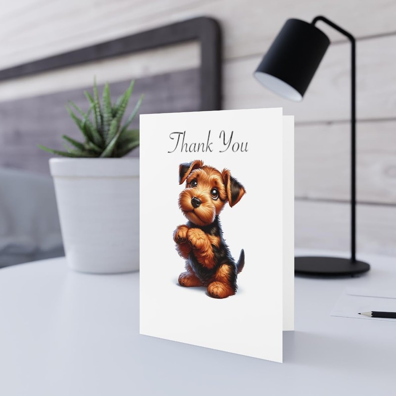 DistinctInk Greeting Card/Note Card -Welsh Terrier Puppy Cartoon Birthday - PACK of 25