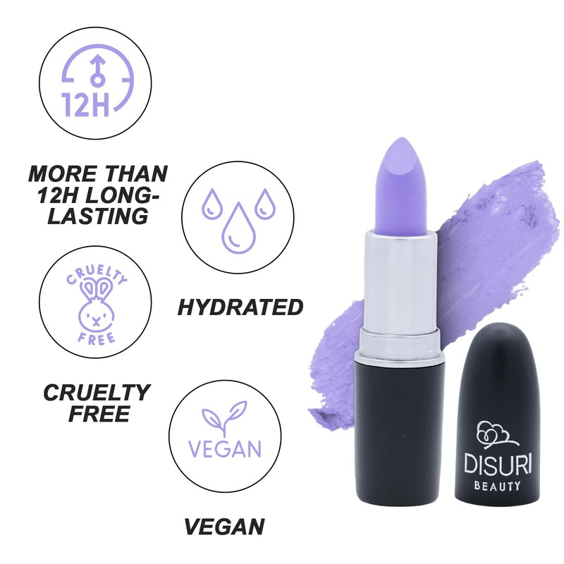DISURI Beauty Matte Bullet Long Wear Lipstick - Vegan and Cruelty-Free - Smudge and Waterproof Matte Lipstick with Moisturizing Formula - All Day Comfort - (Lavender Lust #13)