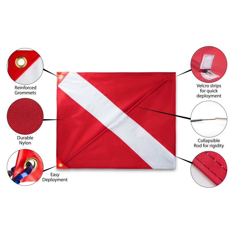 - ✅EASY TO USE MULTIPURPOSE DIVE FLAG - Quick and simple assembly. Use on a boat, off the beach, or attached to a float. Includes 2 Zip Ties.