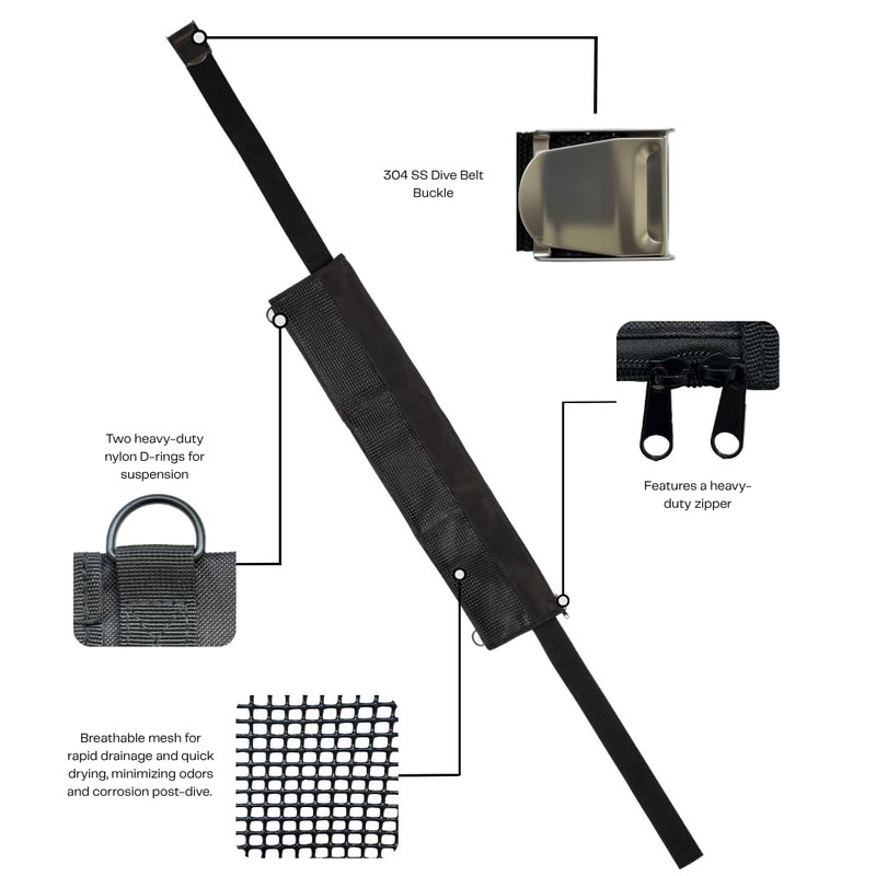 - High-Capacity Weight Storage: Designed with three separate compartments that hold up to six standard 4.4 lb diving weights—up to 26 lb total. Evenly distributes weight for improved underwater balance and comfort.