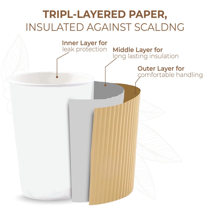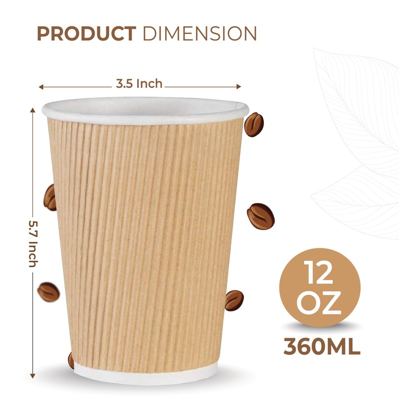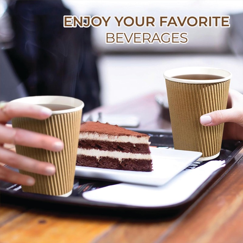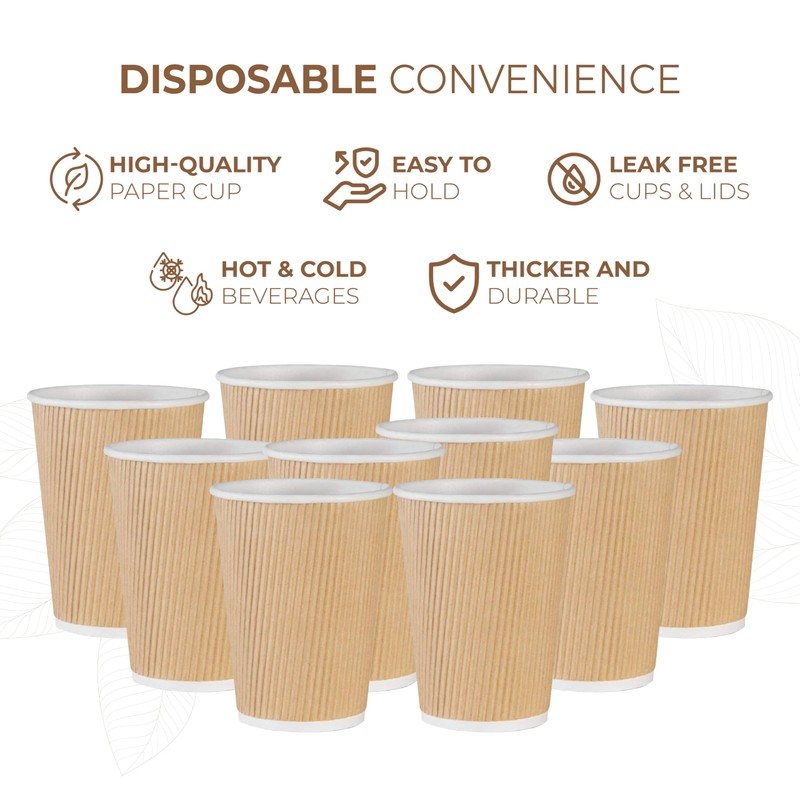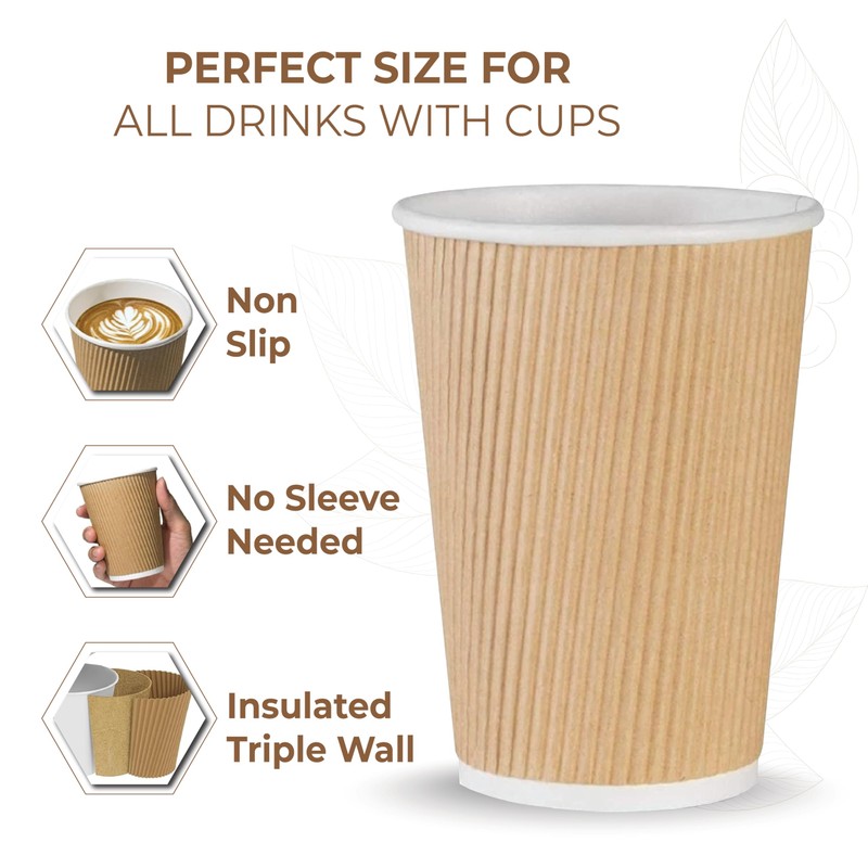 - Leak-Resistant & Sturdy Construction - Designed to hold up under pressure, these disposable ripple cups won’t leak, collapse, or bend. Great for hot coffee, cocoa, or tea on busy mornings or during travel.