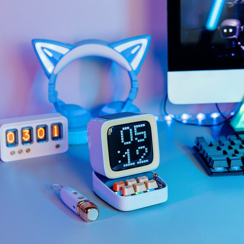 Divoom Ditoo-Mic Bluetooth Speaker with Karaoke Microphone - RGB Keyboard and Pixel Display Desktop Decor, Different Sound Modes, Ideal Gifts for Home Party, Mobile KTV (Blue)
