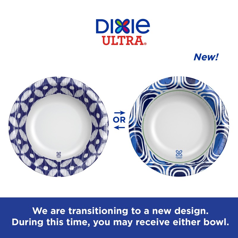 NEW LOOK, SAME GREAT PAPER BOWL! Serve up your favorite foods with confidence on Dixie Ultra disposable bowls and you won’t have to worry about bending, food spilling out or sauces soaking through. Our strong, large paper bowls are microwavable, cut-resistant, and feature a Soak Proof Shield to handle heavy, messy foods like chili, spaghetti or stews. These paper bowls can hold up to lbs. of food and are strong enough to handle whatever you dish out. And with their stylish designs, Dixie Ultra products are always an easy and attractive alternative to using (and washing) real dishes. Count on Dixie Ultra products when you’re entertaining family or friends or planning a special event or celebration. After all, whether you’re hosting a holiday meal, planning a party or just grilling in the backyard, you’ll appreciate the convenience and peace of mind Dixie Ultra products bring. All Dixie branded paper bowls, cups and plates manufactured in Georgia-Pacific facilities are kosher certified by the Orthodox Union. Stock up today!