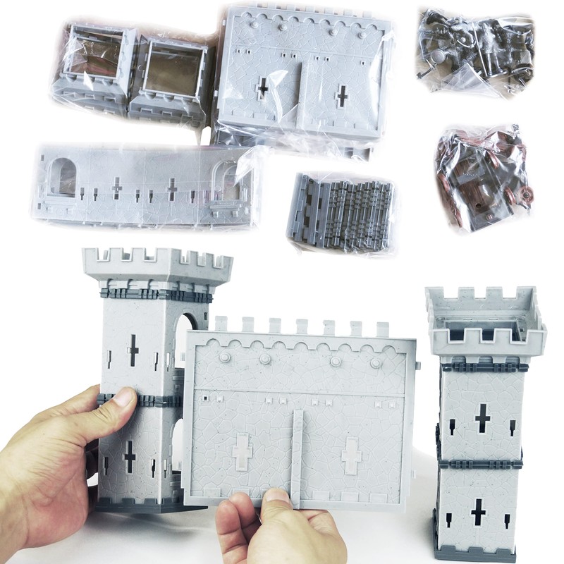 • Medieval castle battle set includes the castles assembly set, 8 cavalries, 24 infantries, various weapons with different postures and styles, as well as Ballista and catapult.