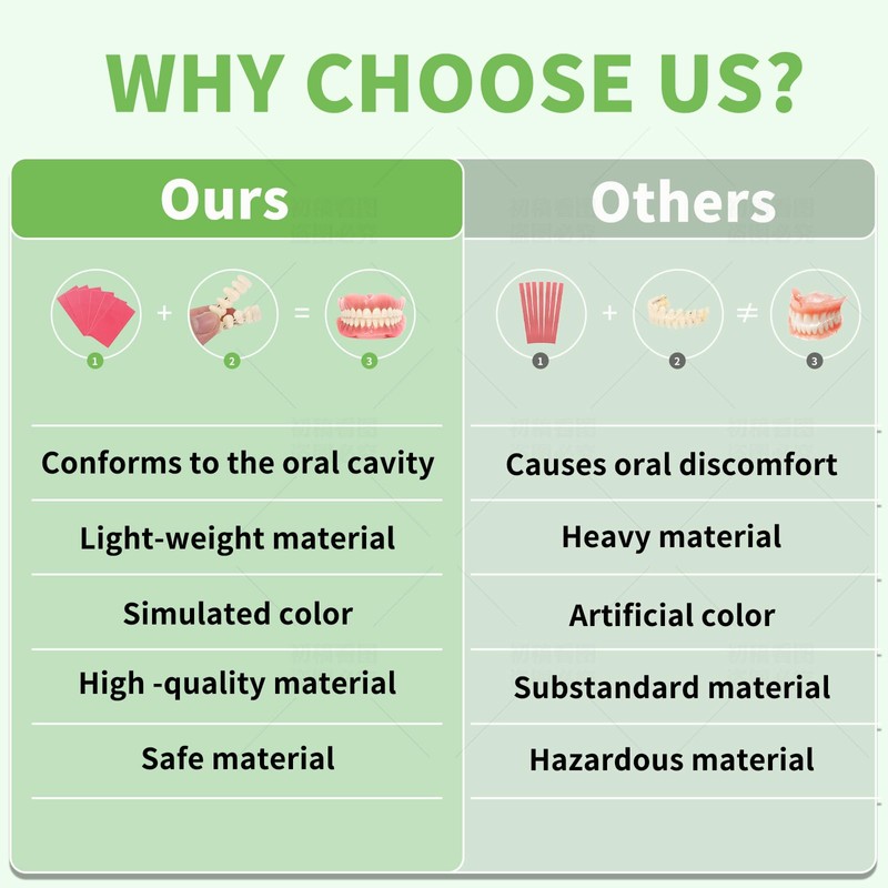 - Durable and Dependable Solution:Tailored specifically for individuals grappling with oral cavity concerns, our dentures are constructed to endure. They exhibit a stable color, resisting whitening and deformation over time. Additionally, advanced technology is incorporated to prevent microcracks, ensuring long - lasting performance. These robust dentures serve as a reliable, temporary teeth replacement option, enabling you to smile with natural charm and unwavering confidence.