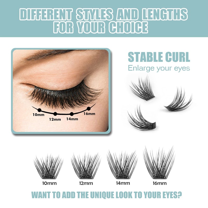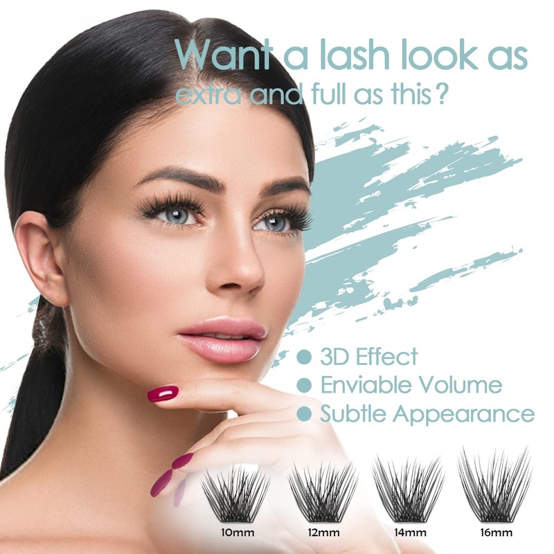 - LASH EXTENSIONS IN A WINK: The cluster lashes are easy to remove and apply which is exactly friendly to beginners. You can apply the DIY eyelash extensions in a wink. Save time and money and bring the salon home!