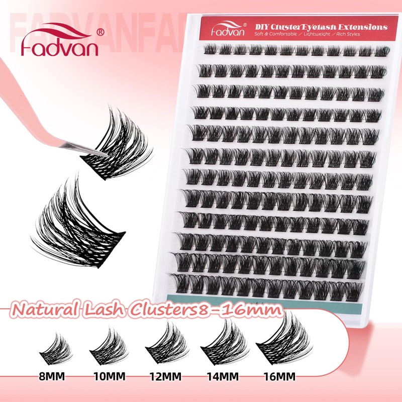 DIY Lash Clusters Extensions - D Curl 0.07mm 8-16mm Mixed Lengths, 144 Clusters Natural Look, Thin Band for Comfort (F32-07-D)