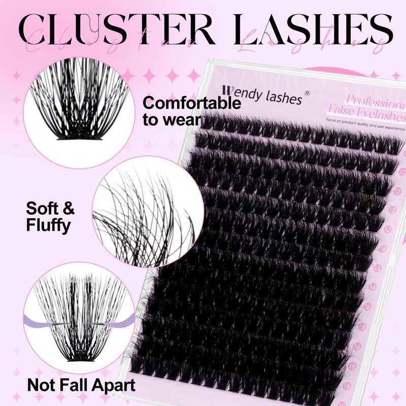- Upgraded Technique, Reinforced Roots: Secondary reinforcement of the eyelash clusters roots prevents them from falling out or becoming deformed. Cluster lash extension are fluffy and curled, and will not fall out even when bathing or swimming.