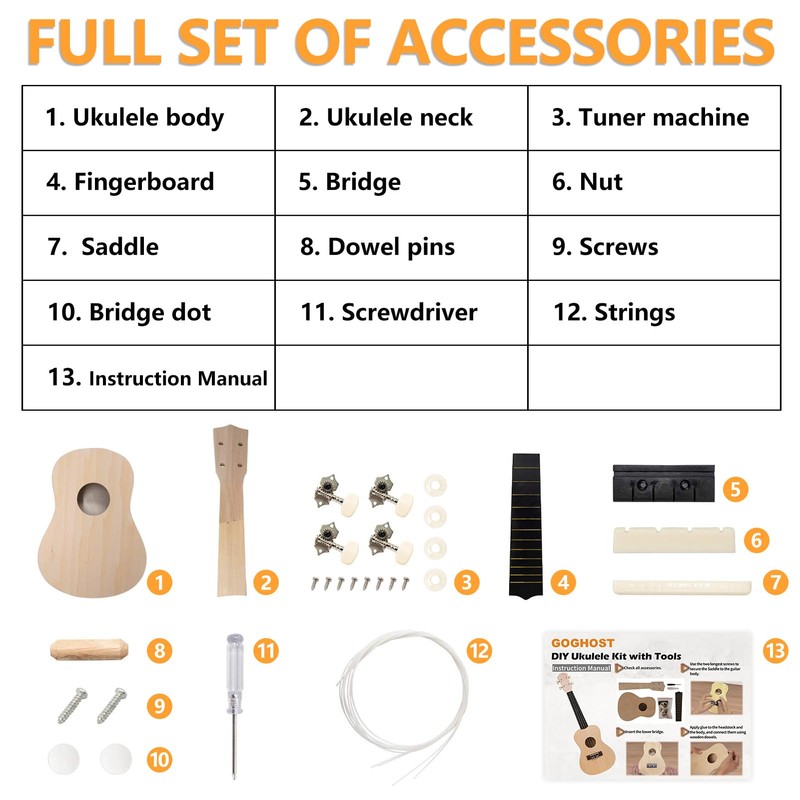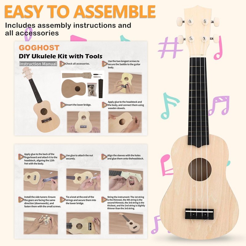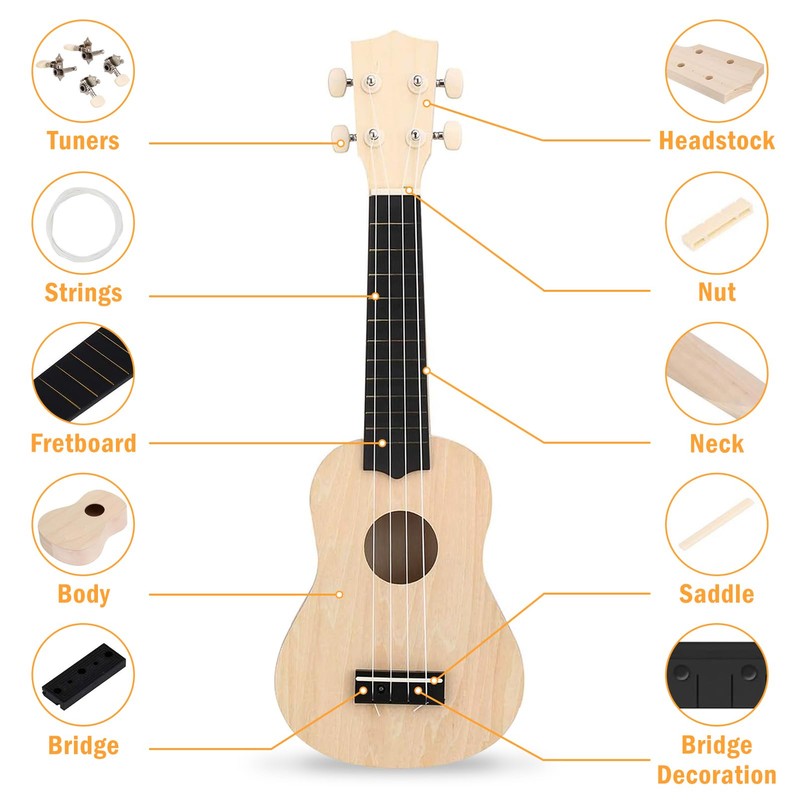 - [The fun of DIY]: You can understand every part of the ukulele during the hand-made process, and you can also improve your hands-on ability and creativity. Come and get this unique fun with your family and friends!