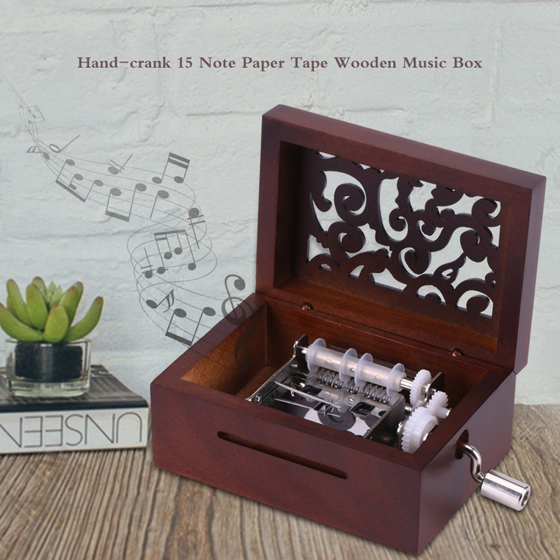 DIY Wooden 15 Note Hand cranked Tape Music Box Brithday Gift