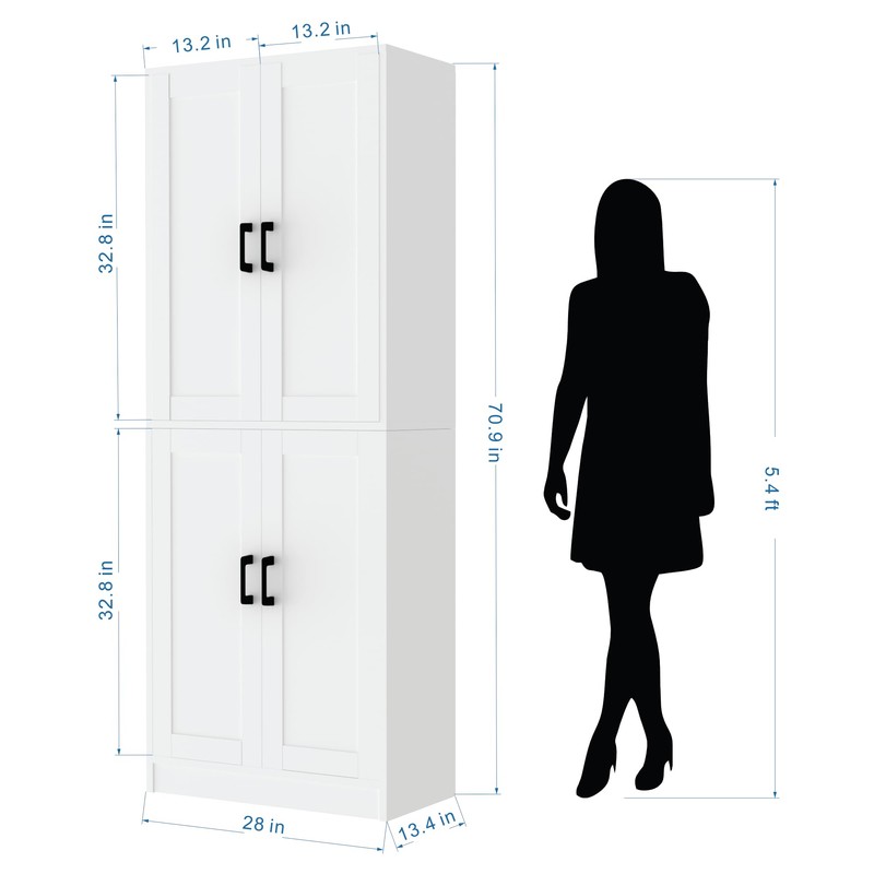 - ✔Multifunctional Storage Cabinet. Our DIYART kitchen pantry works as good as a storage unit and is suitable to use in many different ways at home, such as hallway cabinet or file cabinet in the office. Overall Dimensions: 28"W x 70.9"H x 13.4"D.
