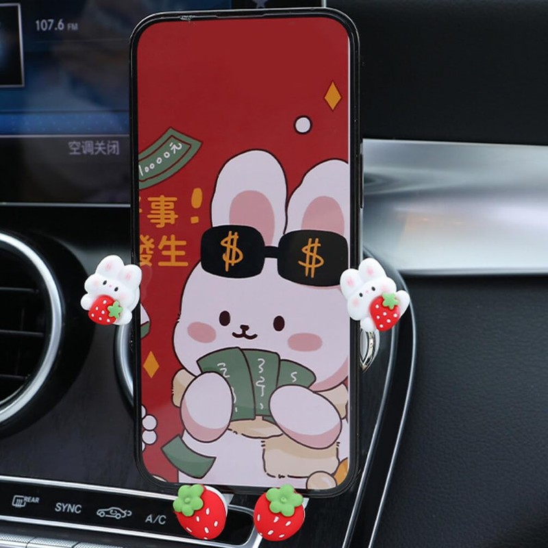 DIYEAH Cute Phone Mount for Car, Cute Zodiac Rabbit Car Phone Holder, Bunny Phone Mount Air Vent Mobile Phone Support
