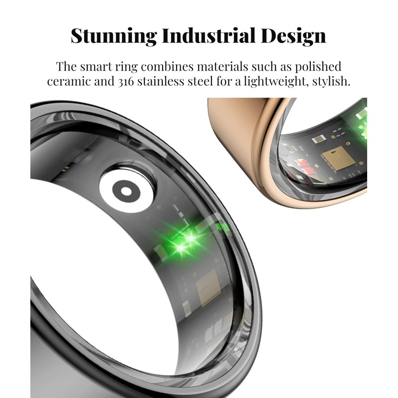 - REINVENT A HEALTHY LIFE: By recording and analyzing health data, it can motivate users to choose a better life style to maintain health, vitality and balance. Whether you are concerned about fitness, focusing on sleep or wish to manage stress effectively, the smart ring can provide you with customized advice and guidance.