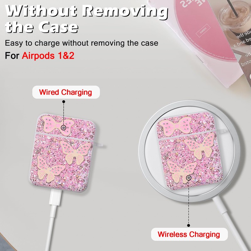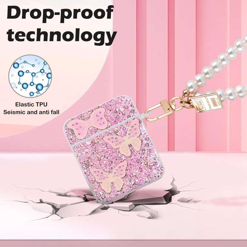 • ღGlitter Butterfly Design - This lovely glitter butterflies pattern is very elegant and stylish, make your air pod unique. It is the best gift for your family, women and girl girlfriends, yourself, and teenagers.