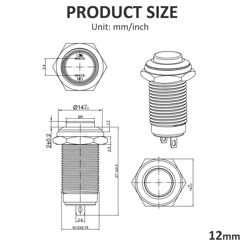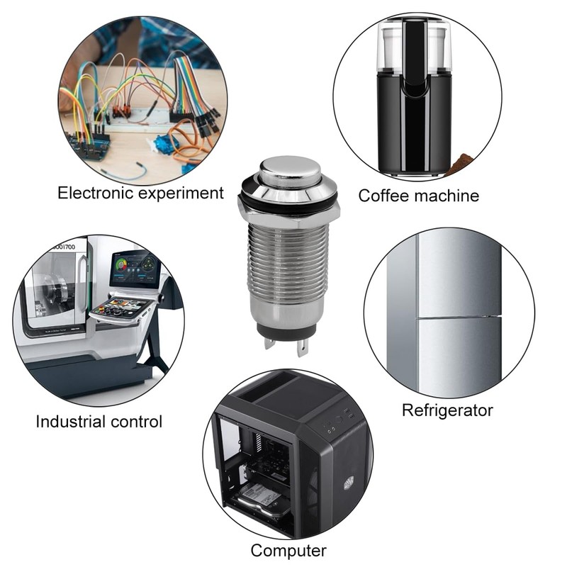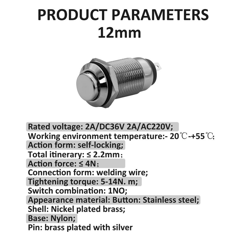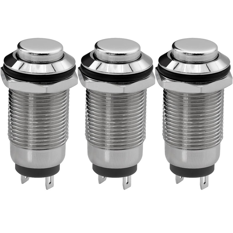 DIYhz Metal Waterproof Push Button Switch Self-Locking Lock Switch 12mm Small Power Button Switch Silver 2A/DC36V 2A/AC220V 3PCS